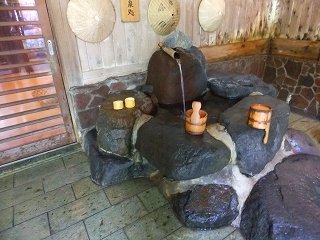 浴室に入ると右に掛け湯処があって、源泉が出ている所に飲泉用のカップが置いてあります。