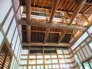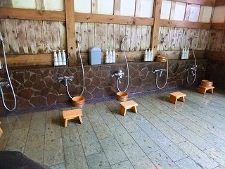 内湯の天井の梁には 雪深い地域の施設で何度か見た 太い丸太が使われています。
