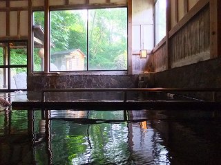 浴室の床には触感の良い十和田石が使われていて、内湯には 温度違いになった大小2つの