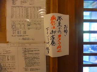 関越道の湯沢インターから三国街道を水上方面に走ると(約12キロ走った所で)右に 貝掛温泉 の入り口があって、そこから狭い道を下りて橋を渡ると その先にあります。 ![]() ____(車幅1台分の長い橋)____________(橋の先にある入り口) この日は暑かったので、屋根から 建物の温度を下げる為の水が流れ落ちていました。 (貝掛温泉、手前が屋根から流れ落ちた水)旅館の玄関には重厚感のある雰囲気が漂っていて・・ ![]() ________(玄関)__________________(帳場) 帳場の前に雰囲気の良いテーブル席があって、その隣に こもかぶりの酒が積まれてます。 ![]() ____(ロビーのテーブル席)____________(菰樽の右上は八海山) 浴室に向かう長い廊下の壁に貝掛温泉の歴史を伝える展示物があって、その先の窓の下に 大きな錦鯉が泳ぐ池が見えました。 ![]() (廊下に展示された貝掛温泉の資料)___________(錦鯉が泳ぐ池) 廊下を歩いて行くと凝ったデザインの公衆電話があって、途中に(宿の環境意識の高さを 伺える)カバーが取り付けられたゴミ箱があります。 ![]() ______(公衆電話)______________(分類別されたゴミ箱) 長い廊下を歩いた先にある浴室の入り口に「湯殿 悦道大山」と書かれた暖簾が掛かって います。 (浴室の入り口)脱衣所は広くて 隅々まで清掃が行き届いています。 ![]() (ドレッシングコーナー、左に懐かしい体重計)_____(籐の籠が並ぶ脱衣棚) 脱衣所にある温泉分析書によると 源泉名は買掛温泉、泉質は ナトリウム・カルシウム- 塩化物温泉です。 (温泉分析書)脱衣所に下の画像の注意書きがありました。 (脱衣所にあった注意書き)___________ということで、温泉はoff-limitsの中で紹介します。 _________________ ____________(抵抗を感じる方はクリックしないでください)