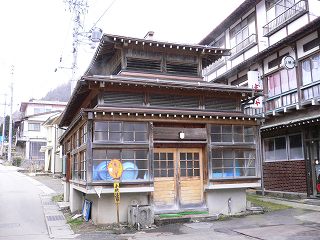 (大湯) (角間温泉の中央にある大湯)他の2つの外湯に比べたら圧倒的に存在感のある建物です。 ![]() _____(大湯の入り口)______________(入り口にある看板) 外観と名前から大きな浴槽があるとものだと思い込んいたら、中にあるのは2〜3人しか 入れない小さな浴槽でした。 無色透明の温泉は100%の源泉かけ流しですが、源泉からの距離が近いせいか やたら 熱かった。 (見るからに熱そうな湯気が上がる温泉)(滝の湯) 温泉街の手前にある共同浴場です。 ![]() _______(滝の湯)______________(左が男湯で、右が女湯) 中に入ると 窓側に脱衣棚があって、浴室の右奥に3人が入れるタイル張りの浴槽があります。 脱衣所と浴室は一体になっていて、境に 小さな段差があるだけです。 100%源泉掛け流しの温泉は源泉の投入量が少なかったが、温度が適温だったので この 大きさの浴槽に合った湯量のようです。 (奥にある穴が湯口)わずかに温泉臭がする無色透明の温泉はサラッとした肌触りで、源泉を直接利用している証 なのか 浴槽の床に砂粒がありました。 壁の上に 名前の由来になったと思われる打たせ湯の痕跡がありましたが、この時は 温泉が 出ていませんでした。 (浴室の石組み)(新田の湯) (新田の湯)こちらの脱衣所も浴室と一体になっていて、木枠の脱衣棚と腰掛があります。 (脱衣棚)こちらの浴槽は2人が入れる大きさのコンクリート製で、所々に 以前 塗られていたと思われる 青い塗料の跡が残っています。 泉質は大湯や滝の湯と一緒で 温度は適温です。 (青い塗料が残る浴槽)(美肌効果) 角間温泉の効能書きにアトピーなどの皮膚炎に効果があると書かれていて、その効果なのか 志賀高原に向かうカーブの多い道ではハンドルを握る手がツルツル滑って大変でした。 _____ - - - - - - - - - - - - - - - - - - - - |