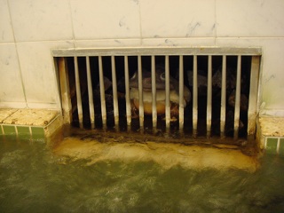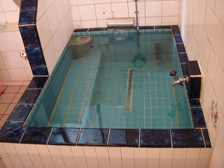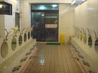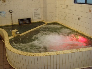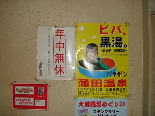 第一京浜と環状8号線が交わる交差点の西にある「蒲田郵便局」と「大田区鎌田地域庁舎」の 間の道路を入って 「蒲田本町」バス停の先にある信号を左折すると、高層マンションの向かい にある4本目の狭い路地の奥にあって、駐車場は高層マンションに面した通りにある「from21」 の1階に2台分ありますが かなり狭い。 ![]() ______(蒲田温泉)______________(駐車場側に詰まれた薪) 下足札と券売機で購入した入浴券を番台に預けると 脱衣所のロッカーキーを渡してくれます。 番台の左に女湯 右に男湯の入り口があって、番台の前に休憩所があります。 ![]() ________(番台)___________(番台前の休憩所と風呂用品の商品棚) 脱衣所には沢山のロッカーが並んでいて、右奥にある洗面台のドライヤーは 銭湯らしく 有料です。 ![]() __(掃除が行き届いた脱衣所)____________(洗面ドレッシング) 白いタイル張りの浴室は 入り口の右にサウナがあって、左右の壁と中央にある仕切りの 両側に 沢山のカランが並んでいます。 固定されたシャワーは可動しますが、ホースのシャワーに慣れた私は使いにくかった。 ![]() (浴槽側から見た洗い場、左奥にサウナ)____(男女の浴室の上の壁に書かれた絵) サウナの隣に水風呂がありましたが、私はサウナと水風呂は使ってないので分かりません。 (サウナの横にある水風呂)洗い場の奥にあるボイラー室に行く通路の両側にある2つの浴槽は、左が源泉黒湯で、右が 泡風呂と でんき風呂になっています。 (通路を挟んだ浴槽)源泉浴槽は2槽に分かれていて、右の高温湯は45度で 左の低温湯が42度の適温です。 低温湯の浴槽に「うたせ湯」と書かれた装置があったが 使い方が分かりませんでした。 源泉の黒湯はウーロン茶ぐらいの透明度で、匂いはなく 心地良いヌルスベの肌触りです。 ![]() (温度違いになった天然温泉の浴槽)_________(透明度が分かるかな) 右側にある浴槽は 手前が泡風呂になっていて、奥にある でんき風呂の柵の中にカエルの 置物があります。 ※ でんき風呂は電気の刺激が かなり強かった。 ![]() (手前が泡風呂で、奥が でんき風呂)________(柵の中にカエルの置物) 源泉の低温湯が心地良かったので長湯をしたかったのですが、10分もすると体の芯から ジワジワと暑くなってきて、一度 脱衣所に戻って体温を下げようとしましたが しばらく体温が 下がりませんでした。 (湯上り) 2階にある大広間で ゆっくりしたかったが、カラオケがうるさくて寛げませんでした。 (2階にある大広間)「バクザン」なる人が蒲田温泉のCDを出したらしく、壁にポスターが貼られてました。 (ビバ、黒湯。 風呂夢(ふろむ) 蒲田温泉)_____ - - - - - - - - - - - - - - - - - - - - |