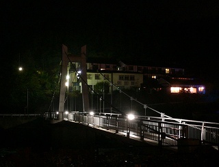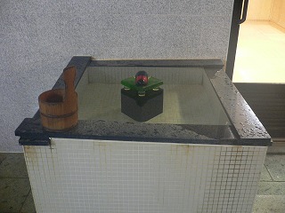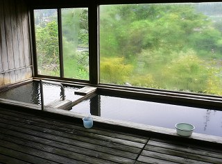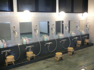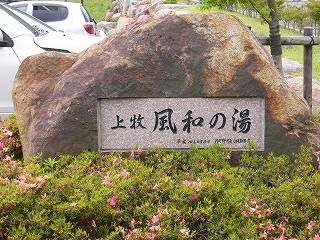 関越道自動車の水上インターから291号線を月夜野方面に走り、上牧温泉の看板から左に 入って下りて行き 橋を渡ってすぐの交差点を右折するとあります。 ![]() _(上牧風和の湯、撮影は6月25日)__________(石碑に書かれた銘) 玄関の格子戸は月をモチーフにしていて、脱衣所にある丸い窓も何かをイメージしたような 感じです。 ![]() _(浴室の入り口に掛かる湯のれん)___________(脱衣所の丸い窓) 施設は新しくて 洗面台周りも清掃が行き届いています。 (洗面ドレッシング)浴室に入ると、右に ホタルのオブジェがある掛け湯の槽があります。 ※ 近くにある常生館では 6月初め〜7月初めまで蛍観賞のサービスがあるそうです。 (掛け湯の中にホタルのオブジェ)洗い場の数は多くて、浴室の床や浴槽の中には 肌触りの良い十和田石が使われています。 (洗い場)縁に黒御影石が使われた浴槽は高級感がありますが、脱衣所の棚の数や洗い場の数に 対して あまりにも小さい。 浴槽からあふれた温泉が排水溝に流れ込んでいたので源泉かけ流しだと思いますが、 ぬるめの温泉は無色透明・無味無臭で ヌルスベなどの温泉らしい特徴を感じませんでした。 (5〜6人が入れる浴槽)露天風呂の敷地は広いが、敷地の隅っこにある浴槽は 1〜2人しか入れない大きさです。 露天風呂も石組みの浴槽からオーバーフローになっていますが、その量は わずかです。 (小さな露天風呂の浴槽)露天風呂から 隣にあるライトアップされた利根川に架かる吊り橋が見えました。 (右上の明かりは常生館の浴室)(湯上り) この時の利用客は私だけだったので、大広間で横になってみたものの落ち着きませんでした。 (大広間)