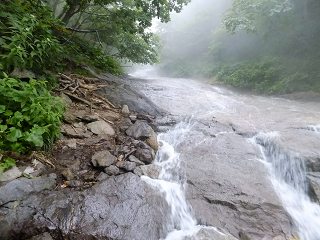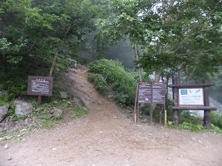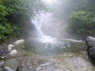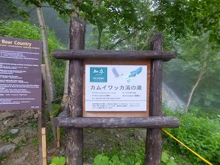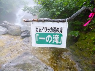 一本道の93号線を海岸線に沿って走ると知床五胡の先からオフロードになって、私の黒い 車は土ボコリで真っ白になってしまいました。(泣) ![]() ____(オフロードの林道)____________(林道で見たエゾシカ) この日は土曜日だったので混雑していると思っていたら、曇り空の夕方だったからか 私が 着いた時には 2台の車が帰る準備をしているところで、監視員のおじさんも自分の車の前で いつでも帰れる状態で待機してました。 ![]() ______(広い駐車場)________________(公衆トイレ) 熊がいる知床の山奥で ガスが発生している中を誰もいない川に入るのは躊躇しましたが、 帰り支度をしていた大学生らしき若者と話したら「温泉はすぐ上にあって裸足で歩いて行け ます」と教えてくれたので、とりあえず行ってみることにしました。 ![]() __(駐車場にある橋から見た滝)____________(湯の滝の入り口) ![]() ____(注意事項の立て札)___________(カムイワッカ湯の滝の案内) 入り口から1〜2分登った所でカムイワッカ川に入ります。 ![]() _____(入り口付近の道)______________(カムイワッカ川) カムイワッカ川は 流れの水量にムラがないうえに岩も滑りにくかったので裸足でも歩けそう でしたが、汚れた登山靴の洗濯と安全を考えて軽登山靴を履いて登りました。 ![]() _______(川の流れ)_____________(靴をぬらす程度の水量) 川を2〜3分登った所に 一の滝があります。 ![]() _____(一の滝の滝壷)_______________(一の滝の標識) 川を流れる水の水質は35億年前の地球と同じだそうで、温泉からは それほど強い硫化水素臭 を感じませんでしたが、口にすると もの凄く酸っぱかった。 ※ 源泉の温度は75℃以上あるそうですが、1番下にある一の滝の温度は かなりぬるい。 ![]() __(滝壷から見上げた一の滝)___________(滝壷から見た下の流れ) 滝壷の深い所は 岩に生えた藻の色で緑色に見えます。 (色気のない男の足)最近 一の滝の上で落石があったようで、ここから上は立ち入り禁止になっていました。 ※ 普段は ここに監視員のおじさんがいるようです。 ![]() __(一の滝の上に張られたロープ)__________(立ち入り禁止の看板) 監視員のおじさんは車の所で待機したままだったので、もっと上を見に行こうと思えば行け ないこともなかったかもしれませんが、ルールを守って ここで引き返しました。 (ロープの所から見下ろした一の滝)_____ - - - - - - - - |