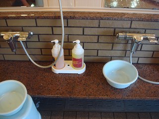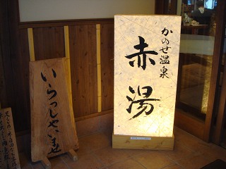 磐越道の津川インターから459号線で阿賀野川を渡り、「向鹿瀬」の信号から1.5キロ先で 左上に登って行くと 右にあります。 ![]() ____(かのせ温泉 赤湯)______________(入り口にある行灯) 玄関を入ると 靴箱の奥に土産物が並ぶホールがあって、その左に受付があります。 貴重品は 浴室の入り口にある100円リターン式のロッカーに入れます。 ![]() ________(受付)____________(浴室の入り口に掛かる湯のれん) 脱衣所は清潔感のある作りで清掃も行き届いてます。 ![]() ____(洗面ドレッシング)_______________(脱衣棚) 浴室の左に並ぶ洗い場は浴槽の大きさに比べて数が少なく ソープ類もチープです。 (洗い場)赤茶色の温泉は100%の源泉かけ流しで、内湯の浴槽は温度違いの2つに分かれてます。 最初に右の浴槽に足を付けてみたら 凄く熱くて足を入れることも出来なかったが、左の浴槽は 熱めだったものの なんとか入ることができました。 ![]() __(内湯の浴槽、奥が熱い浴槽)_____________(内湯の湯口) 浴室の隅に 湯をかき回す棒がありましたが、これを使っても 右の浴槽に入ることは出来 ませんでした。 (湯の かき回し棒)露天風呂は建物の中にある半露天で、(季節的に)前面に 虫除けの黒いネットが張られて いました。 露天風呂が一番入りやすい温度だったので ここで長湯をしましたが、杖忘れの温泉と いわれるだけあって、体の芯から じんわり温まりました。 ![]() _____(半露天の浴槽)______________(露天風呂の湯口) 私が上がろうとした時に 常連らしき4〜5人の年配者が入ってきて、内湯の熱い浴槽を 子供の ようにはしゃぎながら木の棒でかき回してから 誰が何秒入れるか我慢比べをしてました。 長い人は7秒ぐらい入っている人もいましたが 命がけのゲームをしているようで笑えました。