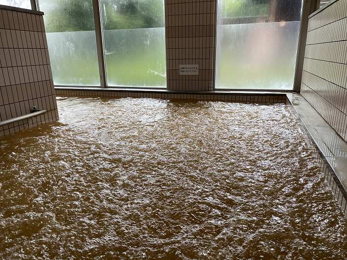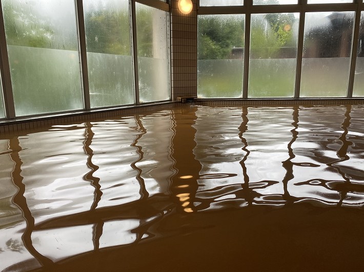 温泉は濃い茶色でかなりしょっぱく 温度は熱めの やや適温ですが、
