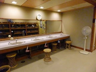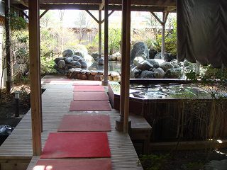 中央道の河口湖インターから約10分で 「河口湖大橋南」の交差点を右折。 御坂峠方面から河口湖大橋を渡る場合は 「河口湖大橋南」を左折して250メートル。 (駐車場側から見たロイヤルホテル河口湖)フロントの対応は良かったが、ロビーは2組のテーブルセットがあるだけで ホテルの規模に 対して狭かった。 ![]() _______(フロント)_________________(ロビー) フロントの左に土産物が並んでいて、その向かいには(4月だというのに)雛人形があって・・ ![]() __(フロントの横に並ぶ土産物)_______(ロビーにあった7段飾りの雛人形) 男女の浴室の入り口の間に 家族で一緒に使えそうなマッサージチェアーがありました。 (男女の浴室の入り口)脱衣所は清掃が行き届いていますが、(ホテルなのに)洗面台のアメニティーがありません。 ![]() ____(洗面ドレッシング)___________(貴重品ロッカーと脱衣棚) 浴室に入ると 右奥に洗い場が並んでいますが、シャワーの使用中に温度が変化したり カランの湯が出る時間が短かったりで使いにくて、備品のソープ類もチープな感じです。 (洗い場)内湯の浴槽は10人が入れる大きさで、浴槽の底に 肌触りのよい板が使われています。 温泉は無色透明・無味無臭にキュッキュッとした肌触りで、この時は塩素臭がきつかった。 内湯の湯口から出ている温泉はぬるいが、浴槽の温泉は加温しているようで適温でした。 ![]() ______(内湯の浴槽)_________________(湯口) 露天風呂は敷地の半分に屋根がかかっていて、そこに2つの浴槽があります。 (露天風呂)手前にある8人が入れる赤御影石の浴槽は 樋の湯口から温泉が出ていませんでした。 屋根があるので開放感はありませんが、風通しが良かったので 内湯の浴槽のような塩素臭は 気になりませんでした。 (手前の浴槽、左上に湯口の樋)奥にある浴槽は20人が入れる岩風呂で、こちらも湯口の樋から温泉が出てませんでした。 どちらの浴槽もぬるめで、泉質にも 温泉らしい特徴を感じませんでした。 ![]() ______(露天岩風呂)_______________(岩風呂の湯口) 温泉には満足できませんでしたが、岩風呂に咲いていたハナモモの花びらが湯面に浮かんで いたのは風情があって良かった。 (温泉に浮かぶ花びら)_____ - - - - - - - - - - - - - - - - - - - - - |