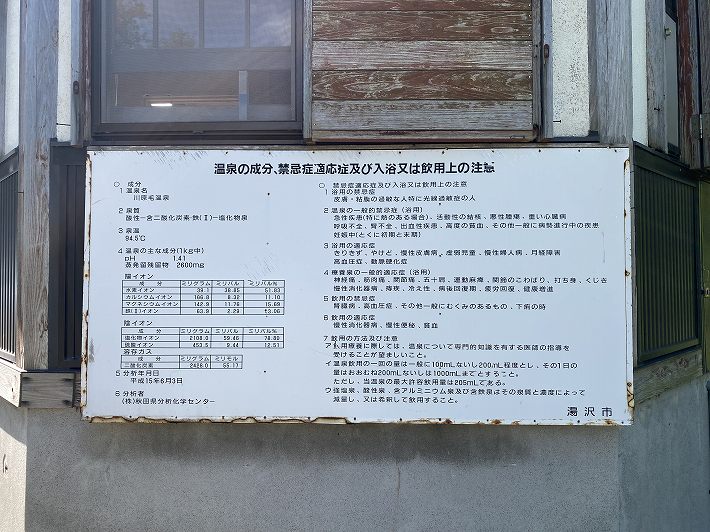 トイレの壁にある温泉の成分表によると源泉名は河原毛温泉 泉質は