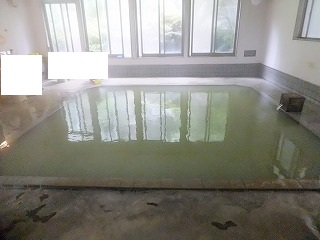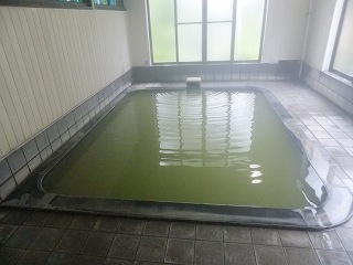 東北道の古川インターから47号線を北西に走り、川渡温泉駅の先にある信号から案内に 従って左に入って橋を渡ると 右カーブの所にあります。 (藤島旅館)旅館の敷地は広いが建物は老朽化が進んでいて、玄関にある大きなショーケースの中には 沢山の招き猫グッズが並んでます。 ![]() ________(玄関)_______________(大きなショーケース) 入浴料金を払うために受付(帳場)に行くと「温泉には500円と300円の浴室があって、300円の 方にはソープ類がありません」というので、リッチな浴槽を期待して 500円の方に入ることに しました。 ※ 脱衣所には籠があるだけなので、貴重品は ここにあるロッカーに入れます。 ![]() ______(受付・帳場)___________(受付の所にある貴重品ロッカー) 帳場から正面にある廊下を歩いて行くと 左に浴室の入り口があって、その向かいに 古びた 感じがする薄暗い客室の廊下が見えました。 ![]() ___(500円の浴室の入り口)______________(客室の廊下) リッチな作りを期待した浴室の脱衣所は狭くて、プラスチックの脱衣籠が入った棚と 簡素な 洗面台があるだけでした。 ![]() _____(簡素な洗面台)________________(脱衣棚) 脱衣所の入浴心得に 源泉名は真癒(マユ)の湯(高温)、真癒の湯冷泉A・真癒の湯冷泉Bの 混合泉で、泉質は 含硫黄-ナトリウム-炭酸水素塩・硫酸塩泉と書かれていて、浴槽の利用 形態の所に 加水・無 (源泉100%)、加温・有(冬季のみ加温)、循環・無(かけ流し)、消毒処理・無、 入浴剤・無 と書かれていました。 (入浴心得)浴室に入ると 左に1つ 右に2つの洗い場があります。 ![]() _______(洗い場)____________(キレイに積まれた洗面器とイス) 浴室には硫化水素臭が充満していて、浴室の大半を占める浴槽には モスグリーンの温泉が 満たされています。 (10人が入れる浴槽)100%源泉掛け流しの温泉は見るからに効能がありそうで、口にすると ゆで玉子の味がします。 私が この朝一番の客だったようで、浴槽の床のタイルには 温泉の硫黄成分による白い膜が 出来ていて、その上を歩くと足跡がつきました。 ![]() _______(湯口)_________(浴槽からあふれる温泉と硫黄で白くなった床)