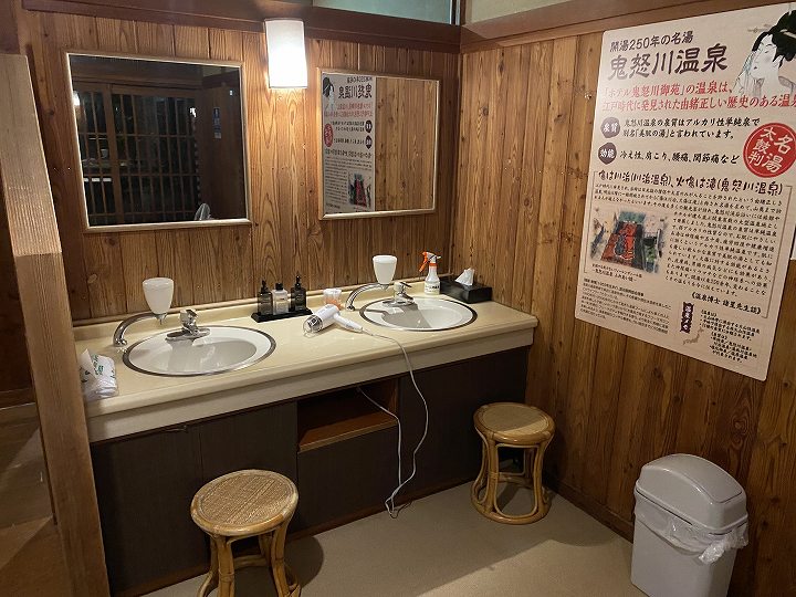 脱衣所は百花の湯や月光の湯と比べるとかなり狭くて 洗面台も2つしかありません。