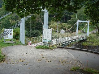 橋のたもとから左下に下りて リバーサイドハウスに向けて180度折り返す所で吊橋を渡ります。