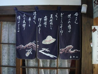 __(玄関にある麦藁帽子の暖簾)__________(山の宿 霧積館の提灯)