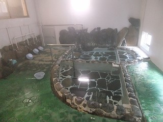 岡山道の岡山総社インターから国道180号と429号線を走って約25Km。 外観にたがわず玄関周りも寂れた感じで、玄関の帳場にも係りの人がいませんでした。 ![]() _______(小森温泉)_________________(玄関) 壁にはワニの剥製があって、廊下には 田舎のスナックのようなイスがあります。 ![]() __(玄関の壁にあるワニの剥製)____________(廊下にあるイス) 画像では小奇麗に見える渡り廊下も 歩くとギシギシと音がして、その先で右に曲がった所に 受付と書かれた紙があったので 声を掛けると主人が出てきて、料金を受け取って簡単な 案内をして すぐに中に入っていきました。 ![]() _______(渡り廊下)_________________(受付) 脱衣所にはロッカーがないので貴重品は廊下の突き当りにあるロッカーに入れるのですが、 このロッカーを使うには 鍵の保証料として1000円が必要です。 (貴重品ロッカー)浴室は地下1階にあって、受付の奥にある階段を下りた所に脱衣所があります。 ![]() ____(浴室に下りる階段)________________(脱衣所) 脱衣所にある温泉分析書によると 源泉名は小森温泉、泉質はアルカリ性単純泉で、横に ある紙に加温をしていると書かれてました。 ![]() _____(入浴者の心得)________________(温泉分析書) 浴室に入って数段の階段を下りると 左に洗い場があります。 洗い場にはシャワーがなく、左に 使い道の分からない蛇口があって、その隣に固形石鹸が あります。 ![]() __(入り口のドア(左)と洗い場)________(何かの蛇口・ 固形石鹸・ 洗い場) ![]() _____(洗面器とイス)________________(固形石鹸) 浴室の奥にある浴槽は2つに分かれていて、湯口がある奥の浴槽が やや熱めの適温です。 ※ 奥の浴槽にだけ 浴槽の中に腰掛があります。 ![]() ____(2つに分かれた浴槽)__________(パイプから出ている温泉) 奥の浴槽からあふれた温泉が流れ込んでいる手前の浴槽の温度は かなりぬるくて、この 浴槽の縁にある溝から 温泉が流れ出ています。 (縁の溝から流れ出る温泉)源泉掛け流しの温泉は 無色透明・無味無臭でツルスベの肌触りです。 ※ わずかに温泉臭とゆで玉子の味がしましたが、無味無臭と言っていいと思います。 ![]() _(壁の低い位置にある浴室の窓)__________(窓から見た外の景色) (湯上り) 廊下の突き当りにある休憩室に 大きな自販機と年代物のマッサージ器があります。 ![]() _______(休憩室)________________(マッサージ機) 廊下を歩いている時に見えた客室も質素な感じでした。 (客室)_____ - - - - - - - - - - - - - - - - - - - - |