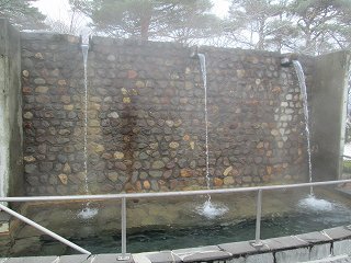 _____(岩風呂・冷鉱泉)____________(浴槽からあふれる温泉)