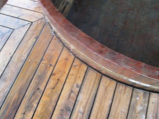 桶風呂は含鉄泉(酸性緑礬泉)で 神経痛・やけど・アトピー性皮膚炎・慢性便秘・糖尿病・