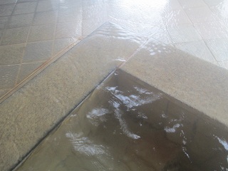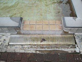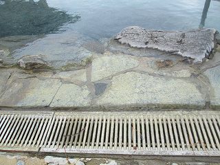 温泉は源泉かけ流しで 浴槽からあふれた温泉は排水溝に流れ込んでいます。