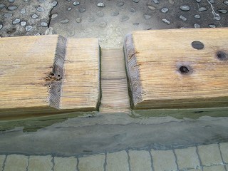 _______(湯口)_______________(浴槽からあふれる温泉)