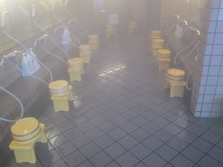 2重の戸を開けて浴室に入ると 左に立って使うシャワーとかけ湯がありますが、この時は