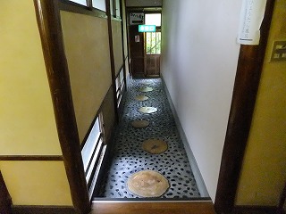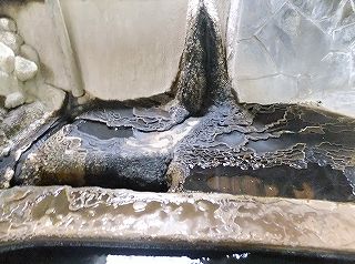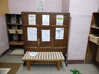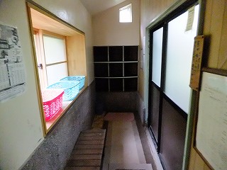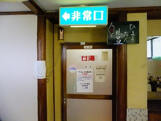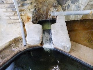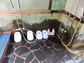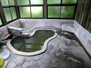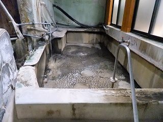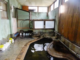 東北道の古川インターから47号線を北西に走り、鳴子御殿場駅の手前から左に入ると左に あります。 (高友旅館)歴史を感じさせる作りの玄関を入って受付で料金を払うと、宿の方が 黒湯とラムネ風呂の 案内をしてくれます。 (玄関、左奥が受付)受付の正面にある廊下を歩いて行くと突き当たりに自炊棟があって、その手前から左に行って 階段を下りると 黒湯の浴室があります。 ※ 立ち寄り入浴の場合は関係ないですが 黒湯は午後8時〜9時が御婦人専用になります。 ![]() (黒湯に行く廊下、右のケースに トラの剥製)_______(黒湯の入り口) 脱衣所は適度な広さで、右に2段の脱衣棚があって 衝立の奥に3段の脱衣棚があります。 ※ 洗面台は男女の浴室の入り口の前にあって 脱衣所にはありません。 (簡素な作りの脱衣所)脱衣所にある黒湯の入浴心得によると 源泉名は幸ノ湯、泉質は 含硫黄-ナトリウム-炭酸 水素塩泉で、加水・加温・循環・消毒処理・入浴剤は使用していないとのことです。 (入浴心得)浴室に入ると左に2つの洗い場があり、右に洗面器とイスが並んでいて ソープ類は リンス インシャンプーとボディーソープが1本ずつあります。 (洗い場)浴室は広くて 壁側に10人が入れる曲線を描いた浴槽があります。 ![]() ___(入り口側から見た浴室)____________(奥から見た浴室) 温泉は透明度の高い黒緑色で、味は 少し酸っぱく、臭いは 夏の太陽に長時間晒された タイヤのような臭いで、かすかに(鉄とは違う)金属っぽい臭いもします。 温度は ややぬるめで、浴槽の中に(湯口から剥がれた)大きな湯の花が浮かんでいます。 ![]() __(白い湯の花が溜まった湯口)__________(排水溝に流れ込む温泉) 左奥にある 温泉が入っていない浴槽の湯口に、サンゴのような温泉析出物の結晶ができて いました。 ![]() _____(空っぽの浴槽)______________(温泉析出物の結晶) 黒湯から上がった後、受付から右に行った廊下の奥にある ひょうたん風呂に入りました。 黒湯にも ひょうたん風呂にも脱衣所には洗面台がなくて、この廊下に 旅館の雰囲気に そぐわないユニット洗面台があります。 (ユニット洗面台)この時は私の他に客がいなかったので、一声かけて 廊下の突き当たりにある女性専用の ラムネ風呂を見せてもらいました。 ※ Webで調べると浴槽の表面に泡があるようですが、この時は泡が浮いていませんでした。 ![]() ____(ラムネ風呂の入り口)____________(ラムネの湯の浴槽) ラムネの湯から狭い通路を歩いた先に ひょうたん風呂がありますが、脱衣所は狭い。 ![]() _(飛び石が埋め込まれた狭い廊下)_________(脱衣所、奥に脱衣棚) 脱衣所の壁にある入浴心得によると 源泉名は玉の湯、泉質は ナトリウム-炭酸水素塩泉で、 加水・加温・循環・消毒処理・入浴剤は使用していないとのことです。 (入浴心得)ひょうたん風呂は シャンプーとボディーソープはあるもののカランがなくて、浴槽が2人分の 大きさで 温度は やや熱めの適温です。 黒湯と ひょうたん風呂は源泉が違いますが、泉質に それほどの違いを感じませんでした。 ![]() _____(ひょうたん風呂)________________(湯口) (湯上り) 温泉から上がった後 休憩室で休みました。 (パソコンが使える休憩室)廊下を歩いている時に 開いている戸から客室が見えました。 (客室)_____ - - - - - - - - - - - - - - - - - - |