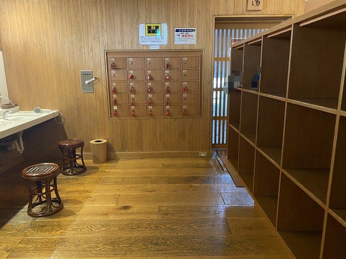 (脱衣所、正面が貴重品ロッカー)