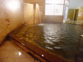 100%の源泉掛け流しの大浴は 高い所にある湯口から滝のように源泉が落ちていて、