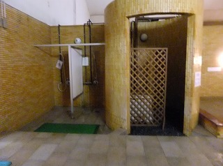 浴室に入ると かけ湯の壷があって、右の壁にサウナがありますが、私はサウナを利用して
