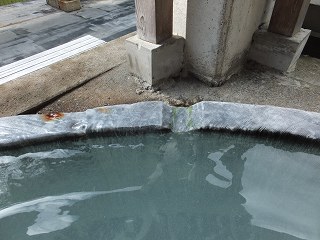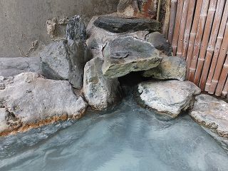 ![]() ____(幕川 水戸屋旅館)___________(日本秘湯を守る会の提灯) 玄関を入ると左に受付があって、そこに「山のいで湯守って」と題された日本秘湯を守る会 会員旅館一同の心意気が書かれてます。 ![]() _______(受付)________________(山のいで湯守って) 浴室に向かう廊下にある温泉分析書によると 源泉名は幕川5号泉で、泉質は 単純硫黄温泉 です。 ![]() _____(温泉分析書)_____________(露天風呂の温泉分析書) 廊下に祀られた薬師如来の奥に浴室の入り口がありますが、その前に 2階にある展望露天 風呂に入りました。 ![]() ______(薬師如来)______________(展望露天風呂の案内) 展望露天風呂は混浴ですが 脱衣所は男女別になっています。 露天風呂の脱衣所には簡単な脱衣棚があるだけで洗面台はありません。 ![]() __(入り口に掛かる湯のれん)______________(脱衣棚) 8の字型をした展望露天風呂は6人が入れる大きさで、周囲を囲む塀が低いので開放感は 申し分ありません。 ![]() ___(展望露天風呂の浴槽)___________(露天風呂から見た景色) 白濁の温泉は心地良い硫化水素臭とゆで玉子の味がして 温度は適温です。 温泉は100%の源泉かけ流しで、浴槽からあふれた温泉は排水口に流れ込んでいます。 ![]() _______(湯口)____________(浴槽の切れ込みから流れ出る温泉) 展望露天風呂を堪能した後、1階に下りて 男女別の内湯に入りました。 脱衣所は雑然としていて 寂れた宿のような感じです。 ![]() ____(洗面台ドレッシング)___________(浴室の入り口と脱衣棚) 浴室の右に並んでいる洗い場のカランは 温泉の影響で黒く変色していて、浴室の右にある かけ湯の槽には温泉が入っていませんでした。 ![]() _______(洗い場)______________(空だった かけ湯の槽) 縁に木が使われた内湯の浴槽は6人が入れる大きさで、浴槽の中には大きな湯の花が浮遊 していて 温度は適温です。 (内湯の浴槽)内湯の温泉は、展望露天風呂に比べると透明度が高いが 硫化水素臭と味に それほどの 違いを感じませんでした。 ![]() _______(湯口)_______________(浴槽からあふれる温泉) 1階の露天風呂は4人が入れる岩風呂で、粒子の細かい白濁の温泉は ややぬるめです。 (露天岩風呂)水戸屋旅館の温泉は全て100%の源泉掛け流しです。 ![]() ________(湯口)______________(浴槽からあふれる温泉) (湯上り) 温泉から上がった後 ロビーのソファーでくつろぎました。 ![]() _______(ロビー)_______________(お土産コーナー) 私は気が付きませんでしたが 駐車場の裏に野天風呂があるそうです。 _____ - - - - - - - - - - - - - - - - - - - - - |