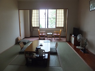 日帰り入浴客専用の入り口の奥にあるテラスを備えたテーブル席の休憩所でくつろぎました。