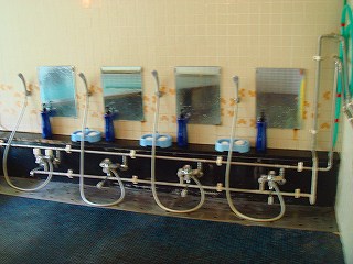 (ホテル摩周)宿名から摩周湖を代表するような大きなホテルだと思っていたら、実際はビジネスホテルの ような外観で、宿泊者がいない時間帯ということもあってか館内が薄暗く ロビーも田舎の スナックのような雰囲気でした。 ![]() _______(フロント)_____________(ホテルらしくないロビー) 土産物は少なくて、ロビーの隅にフォークギターと昔懐かしいステレオセットがありました。 ![]() _____(土産物コーナー)_________(私が若かった頃流行ったアイテム) 宿泊客は靴のまま入れますが、日帰り入浴の客は 玄関でスリッパに履き替えます。 (浴室の入り口に掛かる湯のれん)脱衣所は狭くて、ロッカーもホテルの物とは思えないほど小さいうえに洗面台も簡素です。 ※ ロッカーの反対側に ドライヤーが1つありました。 ![]() __(スチール製の脱衣ロッカー)______________(洗面台) 脱衣所にある還元系温泉の表示に 冷却時のみ加水あり・加温なし・循環なし・塩素消毒等 なしと書かれていました。 ※ この還元系温泉というのは、後日 東北で入った赤倉温泉三之丞でも見たことがあります。 ![]() ____(還元系温泉の表示)______________(体重計とイス) 浴室に入ると 右に積まれたイスとケロリンの洗面器の所に立って使うシャワーが1つあって、 右の壁に8つあるカランは お湯を自分で出したり止めたりできるタイプで、ソープ類はリンス インシャンプーのみで ボディーソープの代わりに固形石鹸があります。 ![]() _______(洗い場)______________(ホテルで固形石鹸・・) 浴室もそれほど広くなく 窓側にタイル張りの三角形の浴槽があります。 ![]() _____(窓に面した浴槽)____________(角度を変えて もう1枚) 温泉は源泉掛け流しですが 浴槽の大きさに対して源泉の投入量が少なかった。 湯口に 温泉由来成分の白い結晶が付いていますが、温泉は無色透明・無味無臭で 肌触り にも特徴を感じませんでした。 ![]() ___(浴槽からあふれる温泉)______________(源泉の湯口) 窓の外に木がありますが、ホテルの建物が景観を壊しているうえに開放感もありません。 (浴槽から見た眺め)