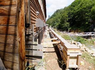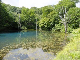 八幡平周辺の温泉と乳頭温泉郷で温泉めぐりをするために、東北道の松尾八幡平インター の1つ手前にある西根インターを出た所にある大更で、ガソリンを満タンにした後 スーパー (COOP)で2日分の食料と酒と水を調達してから出発しました。 ※ 今回の最初の2泊の車中泊場所をレポの最後に記載しています。 大更から23号線と212号線で西に登って行くと松川温泉の一番手前にあって、看板から左下 に下りて行くと 神秘的な色をした御護沼龍神伝説の池の下に広い駐車場があります。 ![]() __(この看板から左下に下りる)___________(看板の下にある池) 玄関前の左に温泉玉子を作るような温泉槽があったので、(確認していませんが)玉子と ネットを持って行くと温泉玉子を作れるかもしれません。 ![]() _______(松楓荘)_____________(玄関の前にある温泉槽) 玄関を入ると左奥に軽食が出来そうなカウンターがあって 右に受付があります。 入浴料金を払うと「ヤクルトと ゆで玉子のサービスがありますが どちらがいいですか」と 聞かれたので ゆで玉子にしました。 (ゆで玉子のサービスは2ページ目に記載) ![]() ____(軽食のカウンター)_________(日本秘湯を守る会の提灯がある受付) こちらの宿の名物の つり橋を渡った先にある岩風呂(洞窟風呂)は 2年前の大雨で洞窟が 決壊したが、国定公園内の為に洞窟を移動して作り直す許可が下りず修復出来ないという ことで 利用できませんでした。 ※ その時は 宿も床上まで浸水したそうです。 (橋の右奥が洞窟風呂)受付から 春夏秋冬にわたって岩手山を撮影したパネルが展示された長い廊下を歩いて行くと 大広間の奥に男女別の内湯があります。 ![]() _(客室に登る階段と温泉に行く廊下)____(だけかんばの湯と書かれた男湯の内湯) こちらの脱衣所はリニューアルさればかりで とてもキレイです。 ![]() _______(脱衣棚)_______________(センスの良い洗面台) 脱衣所にある温泉成分表によると 源泉名は松川温泉桜の湯、泉質は 単純硫黄泉で、 隣の項目に 源泉温度が高いので加水しているが 加温・循環・入浴剤は使用していない と書かれていました。 (温泉の成分表)浴室に入ると 右に8つの洗い場が並んでいますが、洗い場にはカランやシャワーがなくて 壁にある槽から お湯を汲んで使います。 (洗い場)浴室の窓側に ぬるめと普通の温度に分かれた石板作りの浴槽があって、建物の外にある 樋から供給されている源泉は(源泉の温度が高いので)湯口の外で 温度調整の水が加え られています。 ![]() ___(2槽に分かれた浴槽)___________(露天風呂から見た温泉の樋) 浴槽の入り口にある踏み台は3段で、浴槽の中には 沢山の湯の花が浮遊してます。 青みがかった白濁の温泉は 適度な硫化水素臭がして泉質もマイルドです。 (湯口)温泉は源泉かけ流しで 浴槽からあふれた温泉は縁にある溝から流れ出ています。 (浴槽からあふれる温泉)