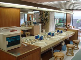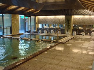 水上インターから3km、車で約7分。 (パンフレットから) 水上町には日帰り入浴施設がいくつかありますが、登山者や観光客の利用も多いので混雑 が心配だったのですが、(多少料金が高くても)聚楽では貸切の状態で利用できました。 ![]() ______(ホテル聚楽)_________(ホテルと駐車場の間にある忠霊塔公園) 温泉は地下にあって、男湯は さらに専用エレベーターで下りた所にあります。 (天狗の湯に下りる専用エレベーター)高級感のあるホテルだけに脱衣所は余裕のある作りでアメニティーも充実しています。 ![]() _____(洗面ドレッシング)_______________(脱衣棚) 浴室に入ると 右に「軟水」と書かれた かけ湯があります。 (温泉ではありません)浴室の2面の壁に並ぶ洗い場は壮観で ソープ類も色々な種類があります。 ![]() ____(壁に並ぶ洗い場)______________(右は ひのき泥炭石) 内湯には 石板造りとヒノキ造りの大きな浴槽があって・・ ![]() ___(手前がヒノキ造りの浴槽)__________(手前が石板造りの浴槽) その奥に 3連の打たせ湯が落ちるジャグジー槽があります。 (ジャグジー槽)露天風呂も大きいが 内湯の浴槽に入った後だと小さく感じて、湯口の奥に 水の流れを イメージして作られた足ツボを刺激する石のゾーンがあります。 ![]() ______(露天風呂)___________(露天風呂の湯口、奥が足ツボの石) 露天風呂の眼下に利根川が流れて 対岸の山も徐々に紅葉し始めていましたが、目隠しが 大きすぎて開放感はいまいちでした。 ![]() ____(眼下を流れる利根川)______________(対岸の紅葉) (湯上がり) 素晴らしい景色を眺めながら利用できるマッサージチェアーでくつろぎました。 (無料で使えるマッサージ器)_____ - - - - - - - - - - - - - - - - - - - - |