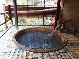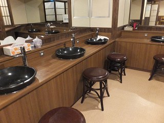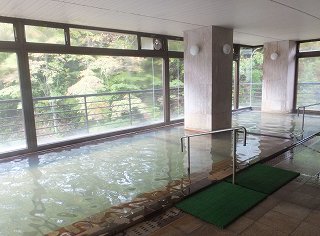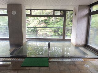 ※ 現在は 森の旅亭マウント磐梯になってます。 (マウント磐梯ホテル)フロントの横に創業者の胸像とバイクの陸王があります。 ![]() _______(陸王)__________________(フロント) 道路の高さにある玄関が3階なので、浴室がある1階までエレベーターで下りると、浴室の 入り口に「天下の名湯 只今 男性専用時間です」と書かれていました。 ![]() _____(浴室の入り口)____________(入り口の近くにある鎧兜) こちらの温泉は鉄分を含んだ天下一の温泉とのことです。 (温泉の説明)広い脱衣所は 左に脱衣棚が並んで 右に洗面台が並んでいます。 ![]() _____(脱衣コーナー)______________(洗面ドレッシング) 脱衣棚は籐の籠なので 貴重品は鍵のかかるロッカーに入れます。 (貴重品ロッカー)脱衣所にある温泉分析書によると 源泉名は神の湯で、泉質は単純温泉です。 ![]() ______(温泉分析書)_______________(旧 温泉分析書) 2重になった戸を開けて浴室に入ると 右にかけ湯があります。 ![]() _______(かけ湯)_____________(洗い場と浴室の入り口) 浴室の左に5つの洗い場があって 右に10の洗い場がありますが、その内の1つは 木の枠に 囲まれています。 ![]() _______(洗い場)_____________(木枠に囲まれた洗い場) 浴室の左に 細い打たせ湯が落ちる円形の浴槽があって その隣に寝湯がありますが、 この2つの浴槽は かなりぬるかった。 ![]() _____(円形の浴槽)__________________(寝湯) 内湯の窓に面した 温度違いの2つの浴槽は、左の大浴槽が適温で 右奥の4人が入れる 浴槽は ぬるめです。 ![]() _____(適温の大浴槽)_______________(ぬるめの浴槽) 笹濁りの温泉は100%の源泉かけ流しで、温泉成分の結晶が付いた湯口から大量に投入 された源泉は 鉄の臭いと味がします。 (大浴槽の湯口)露天風呂の浴槽は円形で 温度はややぬるめです。 この時は温泉を投入している途中で 八分目ぐらいしか温泉が入ってませんでしたが、満杯に なったらオーバーフローになると思います。 ![]() ____(露天風呂の浴槽)____________(露天風呂の下を流れる川) (湯上り) 浴室の前が囲炉裏風の休憩所になっていて、その奥に畳敷きの休憩室らしき部屋がありま したが・・ ![]() ____(浴室の前の待合所)_____________(奥にある休憩所) 私は フロントの隣にあるロビーでくつろぎました。 ![]() _______(ロビー)_______________(お土産コーナー) _____ - - - - - - - - - - - - - - - - - - - - - |
