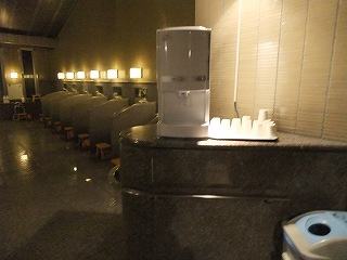 伊勢湾岸自動車道の湾岸長島インターから一般道で約15分。 (里の湯の入り口)受付の前で靴を脱ぐと係りの人が預かってくれて、入浴料金を払うとロッカーキーを渡して くれます。 ※ 入浴料金(1500円)を払う時に 入園券に付いている1000円分の金券を使いました。 ![]() _______(受付)_______________(なばなの里の入園券) 受付の左に女性用の浴室があって、右に 男性用の浴室があります。 ![]() _(浴室の入り口に掛かる湯のれん)_________(脱衣所のイスと血圧計) 落ち着いた作りの脱衣所は広くて、長い服も掛けることができるサイズの脱衣ロッカーは 使い勝手が良い。 ![]() __(清掃が行き届いた脱衣所)___________(縦長の脱衣ロッカー) 洗面台には数点のアメニティーがあり、備え付けのバスタオルとフェイスタオルもあるので (イルミネーションが目的で)手ぶらだった私も気軽に利用できました。 ![]() ____(洗面ドレッシング)_____________(備え付けタオル) 浴室の手前にある部屋は 左にサウナと水風呂があって、右に洗い場が並んでます。 (サウナと水風呂)浴室にある温泉分析書によると 源泉名は長島温泉R-20号泉、泉質は ナトリウム・炭酸 水素塩温泉で、浴槽は毎日換水の清掃を行っていて、源泉が高温のため加水をしていて 新湯を注ぎながら循環ろ過・消毒をしているとのことです。 (温泉分析書)コの字型に並んだ洗い場は1面にだけ仕切り板が付いていて、手前に冷水器があります。 ※ カランの上の縦長の所はガラス張りなので、昼間は かなり明るいと思います。 ![]() _______(洗い場)__________________(冷水器) 2枚目のドアを開けて浴室に入ると かけ湯があって、その奥に 窓に面した大きな浴槽が あります。 ※ 夜だったため手ぶれした画像が多くて申し訳ありません。<m(__)m> ![]() _______(かけ湯)__________________(内湯) 温泉は循環ろ過されてますが 絶えず新湯が注がれていて、浴槽からあふれた温泉は 窓の 下にある排水溝に流れ込んでいます。 わずかに緑がかった温泉は ツルスベの肌触りに心地良い温泉臭がして、カルキ臭は感じ ませんでした。 ![]() ________(湯口)______________(浴槽からあふれる温泉) 日本庭園のような作りの露天風呂は かなり広くて、築山のモミジが見事に色付いてました。 これだけ規模が大きくて完成度の高い日本庭園がある露天風呂は 他に記憶がありません。 ![]() __(2連の打たせ湯がある浴槽)____________(露天風呂の紅葉) 打たせ湯がある浴槽から築山と池を見ながら登って行くと、最上部に 屋根が付いた浴槽が あります。 露天風呂は 全ての浴槽がオーバーフローになっています。 ![]() ____(露天風呂にある道)_____________(最上部にある浴槽) 最上部にある浴槽から反対側に下りた所にある大きな岩を使った大浴槽では、その奥にある 石組みから 滝のように温泉が流れ落ちています。 (露天大浴槽)大浴槽の前に6角形のジャグジー槽があって、この浴槽だけカルキ臭を感じました。 ![]() __(屋根が付いたジャグジー槽)________(ジャグジーの泡が分かるかな) (湯上り) 大広間で 温泉を利用したお茶のサービスがあるようですが、この時は終了間際で誰もいま せんでした。 (大広間)_____ - - - - - - - - - - - - - - - - - - |