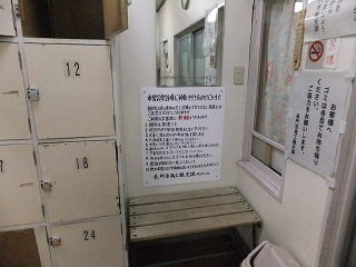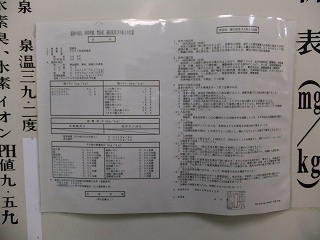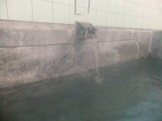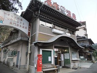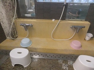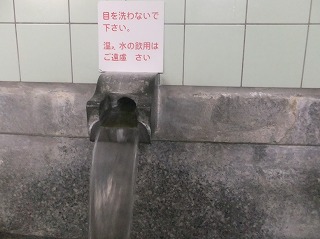 中国自動車道の美祢インターから136号線を北上して約20分で、橋を渡った所に無料駐車場が あって、その隣に 恩湯があります。 ![]() _______(駐車場)_______________(上が札湯、右が恩湯) 駐車場の右隣にある恩湯は歴史を感じさせる建物です。 ![]() _____(風情がある建物)______________(湯元温泉の由来) 中に入ったら 券売機で購入した入浴券を受付に出すのですが、外観にたがわず 内部も かなり年季の入った作りで、受付にいた女性も かなり高齢の方でした。(失礼) ![]() ____(浴室の入り口と受付)_______________(券売機) 脱衣所には 鍵が付いていないスチール製と木箱と有料のコインロッカーの3種類があって、 全てにフタが付いてます。 ![]() _____(脱衣棚とイス)____________(2種類のスチール製ロッカー) 脱衣所の隅に 簡素な洗面台と有料のドライヤーがあります。 (洗面台とドライヤー)脱衣所にある温泉分析書によると 源泉名は恩湯泉で、泉質は アルカリ性単純温泉です。 ![]() ______(温泉分析表)________________(温泉の成分表) 浴室に入ると 右に6つ 左に2つの洗い場があって、双方に1個ずつの固形石鹸がありまし たが、これは容器に入っていなかったので 常備されている物ではないかもしれません。 カランはプッシュ式で シャワーのみ自分で出したり止めたりできるタイプです。 (洗い場)御影石作りの浴槽は胸元まで沈む深さで 中にある椅子に座って ちょうど良く、浴槽は2つに 分かれてますが それぞれの温度は同じ(ぬるめ)です。 無色透明の温泉は かすかな硫化水素臭に強いゆで玉子の味がして、かなりツルスベの 肌触りです。 ![]() ________(浴槽)__________________(湯口) 湯口の所に 下の画像の注意書きがあって、浴室の壁の右上に仏像があります。 ![]() ____(湯口の注意書き)_________________(仏像) 温泉は100%の源泉掛け流しで 浴槽からあふれた温泉は排水口に流れ込んでます。 (浴槽からあふれる温泉)