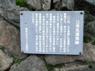 (その他) 恩湯の前を音信(おとずれ)川が流れていて、駐車場前の橋から眺める温泉街も良かった。 (長門湯元温泉の間を流れる音信川)橋の袂から河原に下りた所に公衆洗濯場跡がありました。 ![]() _____(公衆洗濯場跡)_______________(洗濯場跡の案内) _____ - - - - - - - - - - - - - - - - - - - - |
