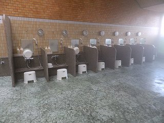 東北自動車道の村田JCTから山形自動車道に入って山形蔵王インターを出たら、286号線と 13号線で約5km。 ![]() ____(ヒルズサンピア山形)_____________(駐車場の紅葉) こちらの施設は山形厚生年金休暇センターが民営化されたもので、受付もロビーも余裕を 持った作りです。 ![]() ________(受付)________________(広いロビー) 私は正面玄関から入りましたが、地元の立ち寄り入浴客は 裏の駐車場側にある入り口から 入ってました。 (駐車場側の入り口)中に入ったら 券売機で購入した利用券を受付に出します。 ![]() _______(券売機)_________________(受付) 受付の前に 小洒落たイスと100円リターン式の貴重品ロッカーがあります。 ![]() _____(受付前のイス)_______________(貴重品ロッカー) 脱衣所は縦長で 壁にプラスチックの籠が入った脱衣棚が並んでいます。 ![]() _(浴室の入り口に掛かる湯のれん)___________(縦長の脱衣所) 脱衣棚が多いのに対して洗面台は2つしかなく、その他に 1脚の鏡台があります。 ![]() ____(洗面ドレッシング)____________(冷水器・体重計・鏡台) 脱衣所にある温泉分析書と温泉表示によると 源泉名は中桜田温泉、泉質は ナトリウム- 硫酸塩・塩化物温泉で、加水・加温・循環濾過装置・塩素系薬剤を使用しているそうです。 ![]() ______(温泉分析書)________________(温泉表示) 浴室に入ると 2つの洗い場の裏に あがり湯があって、左の壁に8つの洗い場が並んでます。 洗い場には仕切り板が付いてますが ソープ類はチープです。 ![]() _______(あがり湯)________________(洗い場) 左手前の壁にサウナと水風呂がありますが、私は どちらも利用してないので分かりません。 ※ サウナの営業時間は 14時(土日祝日は12時)から20時30分と書かれていました。 ![]() _______(サウナ)_________________(水風呂) 浴槽は10人が入れる大きさで 露天風呂はありません。 ![]() _______(浴槽)________________(横から見た浴槽) 温泉は無色透明・無味無臭にヌルスベの肌触りで、湯口の所に沢山の泡が出てました。 温泉が薄茶色く見えるのは浴槽のタイルに付いた色の影響のようで、気になるほどではない 塩素臭がしました。 (沢山の泡が出ている湯口)湯口の他に 浴槽の下にある穴からも大量の温泉が出ていて、浴槽からあふれた温泉は 窓側にある回収口に流れ込んでます。 ![]() __(浴槽の下から出ている温泉)___________(窓側にある回収口) (湯上り) 駐車場側にあるホールに長イスが並んでいて、隣に 座敷の部屋がありました。 ![]() _____(ホールの長イス)____________(テーブルがある座敷) _____ - - - - - - - - - - - - - - - - - - - - - |