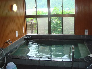 白根館の立ち寄り入浴時間は13時から17時なので、午前中に奈良田に下山してきた人の 多くは こちらの温泉を利用するようです。 (女帝の湯)奈良時代の女帝 考謙天皇の病を治したといわれる温泉です。 温泉は内湯だけで、2つに分けられた木の浴槽は 左の浴槽から あふれた温泉が 右の 浴槽に流れ込むようになっているので、左の浴槽の温度が高くて 右の浴槽が ぬるい 温泉は飲んでも効果があるらしく、湯口に 飲泉用のカップがありました。 ![]() _______(浴室の入り口)___________(窓の外はアジサイが満開でした)