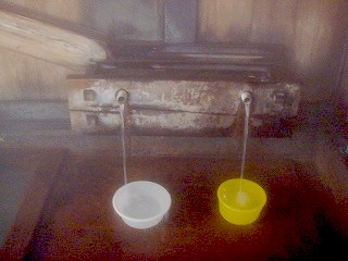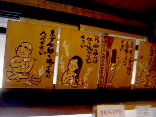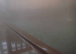 東北道の古川インターから国道47号線を北西に走り、鳴子大橋の手前にある信号から左に 入って 鳴子温泉駅の前にある仙台銀行の横の道路を左折して登って行くと坂の右にあります。 私は 向かいにある3台分の駐車場を利用しましたが、温泉神社の境内の一部が駐車場に 開放されているようです。 積雪の時期だったので、入り口の前に路肩駐車をしていた数台の車は迷惑でした。 ![]() _______(滝の湯)_________(滝の湯の前にある鳴子温泉カラコロまっぷ) 入り口の左の壁にある自販機で購入した入浴券を 番台にある入浴券入の箱に入れます。 (入浴券の自販機)薄暗い脱衣所には木の椅子と脱衣棚があって、天井付近に 入浴心得が書かれた色紙が あります。 ![]() __(脱衣棚の横に貴重品入れ)______________(入浴心得) 浴室には大小 2つの浴槽があり、隅に 手桶とケロリンの洗面器があって、カランの代わりに 流れっぱなしの源泉があります。 ![]() ____(流れっぱなしの源泉)___________(手桶と洗面器とゴミ箱) 温泉は 滝の湯の裏にある源泉から4本の丸太の樋で引かれています。 1本は掛け湯用で、もう1本は大浴槽に勢い良く落ちていて、両端の2本は 奥にある小さな 浴槽の打たせ湯になっています。 ![]() ___(窓の外に見えた源泉の箱)_____________(丸太の樋) 浴槽は 手前にある大きい方の浴槽が温度が高めですが、昨日入った飯坂温泉や秋保温泉 に比べたら心地良い温度で長湯ができました。 青灰色の温泉には沢山の湯の花が浮かんでいて、口に含むと 苦い味がしました。 ![]() ____(大浴槽に落ちる源泉)_________(大浴槽、湯気で これが精一杯) 2つの浴槽の間は 打たせ湯のしぶきが大浴槽に飛ぶのを防止するための格子で仕切られて います。 ※ 下の画像は、手前が小浴槽に落ちる樋で 奥が大浴槽に落ちる樋。 (2本の樋と仕切りの格子)奥にある打たせ湯の浴槽は小さくて、(源泉が2本注がれているのに)温度が ぬるかった。 (小浴槽の打たせ湯)_____ - - - - - - - - - - - - - - - - - - - - |