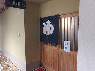 _____(大浴場に行く廊下)___________(浴室の入り口に掛かる湯のれん)