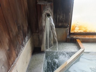 湯口は女性風呂と仕切る塀の下にあって、温泉の温度は かなりぬるめで、浴槽からあふれた