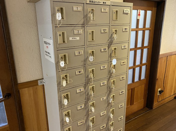 脱衣所のボックスに鍵が付いてますが、廊下にある貴重品ロッカー