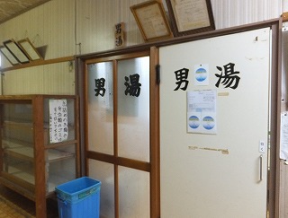 脱衣所は広くて、入り口に 今は使われていない番台があります。