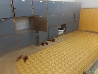 フタ付きの脱衣ロッカーは大きいが、画像で見るよりも痛んでました。