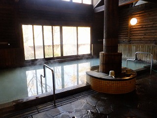 浦和IC →(東北道 98km)→宇都宮IC →(日光宇都宮道路・いろは坂 46km)→ホテル 練馬IC →(関越道126km)→沼田IC →(金精道路・冬季間閉鎖 70km)→ホテル ____________________________(パンフレットより) ※ 現在は ザ・リッツ・カールトン日光に変わっているようです。 ![]() ___(レイクサイドホテル)__________(昭和初期、当ホテル正面玄関) ![]() _______(ロビー)_________________(フロント) 今回は 温泉とランチのセット(2000円)にしましたが、カレーには 柔らかくて大きな和牛肉が ゴロゴロ入っていて、食後に コーヒー・紅茶も付いて かなり お得でした。 ![]() ____(ダイニング 華厳)_____________(黒毛和種牛のカレー) 写真は失敗しましたが、食事をしている時に ホテルの庭園にアナグマが現れました。 (ホテルの庭園と男体山)温泉は ホテルのロビーからカフェラウンジの横を通って長い通路を歩いた先にあります。 ![]() ____(お土産コーナー)__________(カフェラウンジ・ラ モンターニュ) 温泉棟の入り口に「湖畔乃湯」と書かれていて、中に入ったら係りの人に フロントでもらった 入浴券を渡します。 ![]() _____(浴室の入り口)________________(温泉の係員) 湯のれんをくぐった所にとちぎ にごり湯の会のポスターがありました。 ![]() _(浴室の入り口に掛かる湯のれん)____________(ポスター) 脱衣棚は籐の籠が入った棚なので 貴重品はスチール製のロッカー(100円)に入れます。 洗面台は ホテルのイメージとかけ離れてましたが、脱衣所の床は 温泉熱を利用した 床暖房で温かかった。 ![]() _______(脱衣棚)_______________(洗面ドレッシング) 脱衣所にある温泉成分表によると 源泉名は奥日光開発(株) 1.2.3.4.7号 森林管理署 源泉混合泉、泉質は 含硫黄-カルシウム・ナトリウム-硫酸塩・炭酸水素塩温泉で、源泉の 温度が高いので加水しているが 加温・循環・入浴剤・消毒剤は使っていないとのことです。 (温泉成分表)木造の浴室は天井が高く、中央に丸太の柱が立っていて 左に6つの洗い場があります。 ![]() ______(湖畔の湯)_______________(柱の奥に洗い場) 温泉は 近くにある中善寺 金谷ホテルと同じ源泉ですが、向こうが乳緑色だったのに対して こちらは乳青色です。 (乳青色の温泉)温泉は画像で見るより透明度が高く、浴槽には沢山の湯の花が浮いていて、硫化水素臭は それほど強くなく 酸っぱさも適度ですが、口にすると 強いゆで玉子の味がします。 源泉の温度は かなり高いが、浴槽の温度は やや熱めの適温です。 ![]() ________(湯口)______________(浴槽からあふれる温泉) 広い窓の外には(紅葉の奥に)中禅寺湖と奥白根山が見えて 右に男体山が見えました。 (浴槽から見た景色)(湯あがり) 浴室の奥にある休憩室には冷たい水が用意されていて、窓側に 有料のマッサージチェアが 並んでいます。 温泉の成分が強いからか 温度が高目だったからか、湯上りに かなりの疲労感を感じました。 ![]() _______(飲料水)_________________(休憩所) 湖畔の湯の隣に貸切の温泉棟がありましたが、私は利用していないので分かりません。 (貸切の温泉棟)_____ - - - - - - - - - - - - - - - - - - - - |
