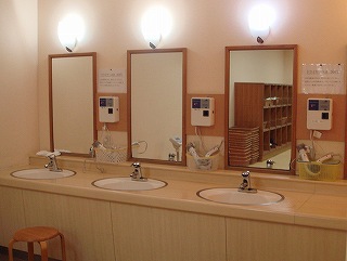 洗面台も清潔感のある作りですが 共同浴場なのでドライヤーは有料(3分30円)です。