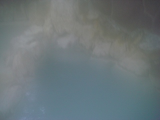 1番右にあるのが 青白濁の 目の湯(42度)で、浴槽の底に湯の花が沢山溜まってます。
