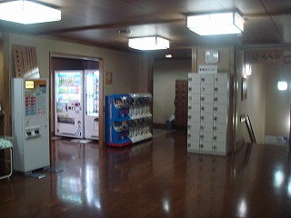 _____(受付と券売機)_________(貴重品ロッカーの右が浴室に下りる階段)