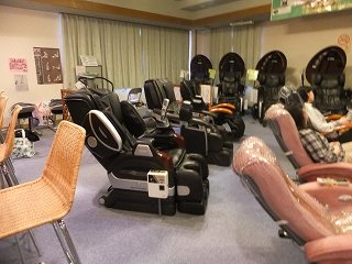 リラックスルームには沢山のマッサージ機があって、中には シアター付きのタイプもありました。