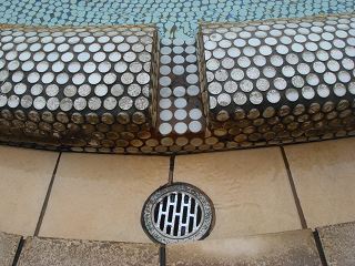 浴槽は40人ぐらいが入れる大きさで、昔の銭湯で見たことがある小さな丸いタイルが張られて