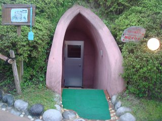 (露骨な形をしたサウナの入り口)